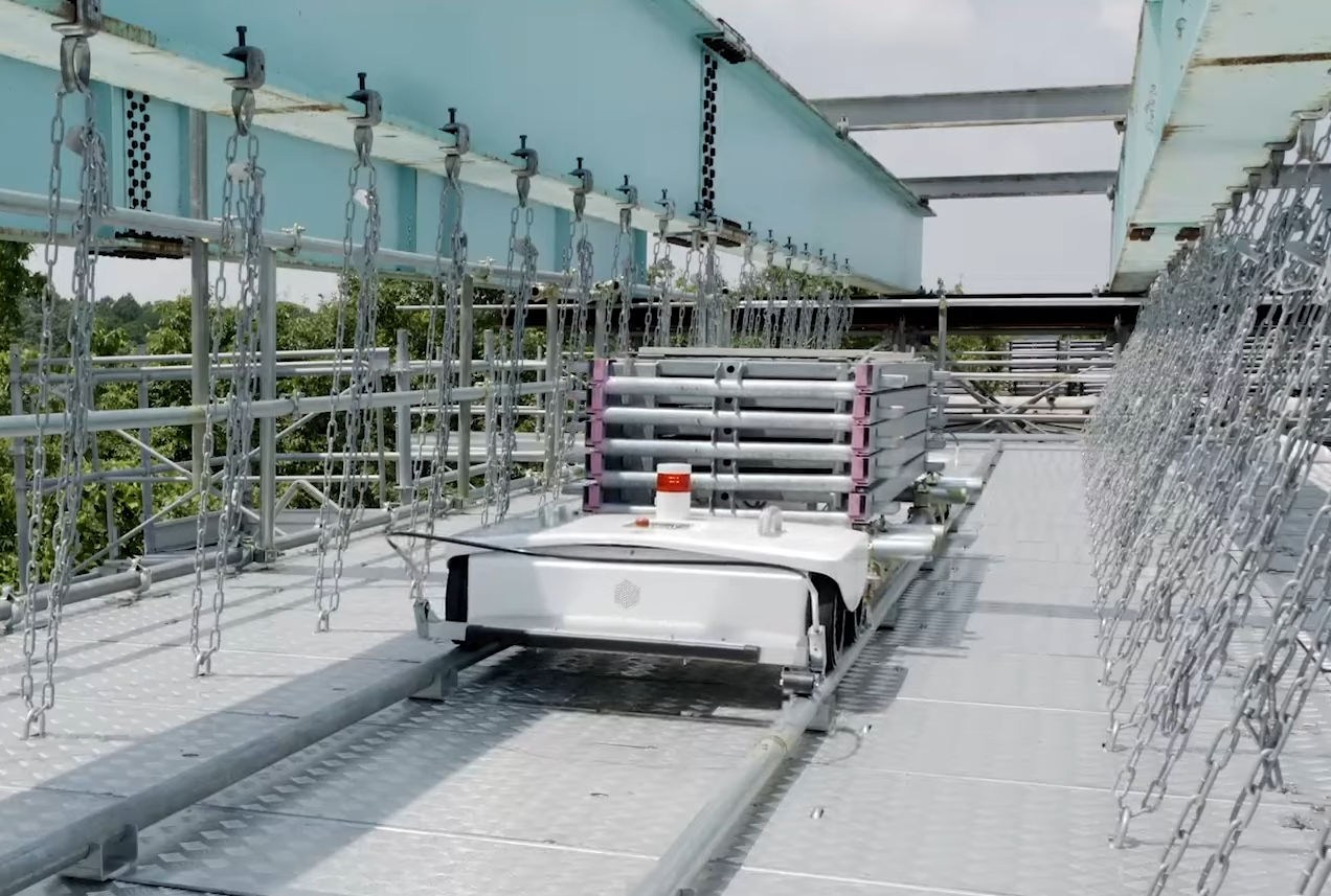 ロボットは1台28kgと軽いため、人力で容易に設置できる一方、最大500kgの資材を一度に運搬できます。