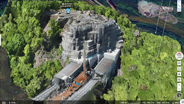 従来は現場でドローンを操縦し、その後の点群データ作成と解析に2人で2日間かかっていましたが、ドローン導入後は約20分の遠隔飛行を行うだけでよく、