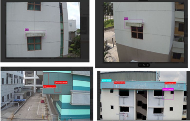 壁のひび割れや錆、汚れや劣化などを人間の目で1つひとつ探すのは大変な作業ですが、AIは数千枚の写真から一瞬で異常を検出します。