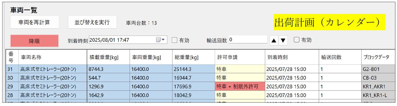 このほか、 積載図に基づいた輸送明細書の作成や、カレンダー機能で現場到着時刻を設定したり、工程と整合した積載帳票を出力したりできます。