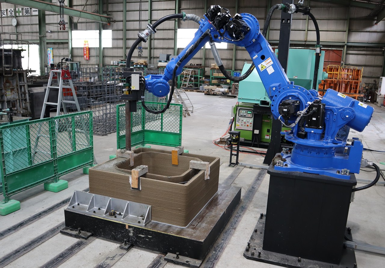 「最近よく見るロボットアーム型の3Dプリンターで型枠を作るマシンかな?」と思う方もいるかもしれませんが、