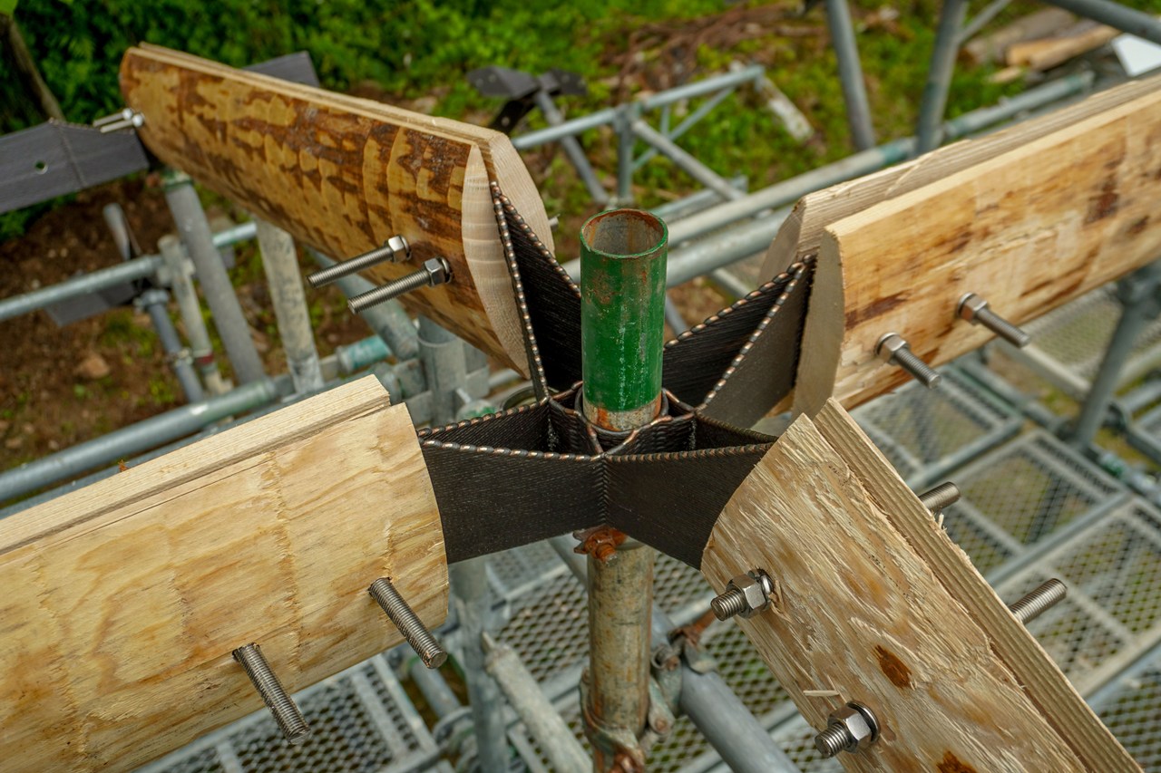 ポイントとなるのは、部材同士を接合する「ジョイント」です。平たく、丸みを帯びた木材をしっかりつなぐため、