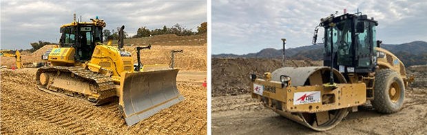 今後は約150万立方メートルの盛土を施工するため、最盛期には自動ブルドーザー2台、自動振動ローラー2台の4台体制で施工を進める計画です。
