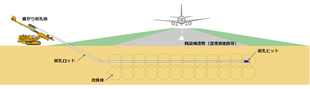 曲がり削孔を利用した地盤改良工事のイメージ(以下の資料、写真:五洋建設)