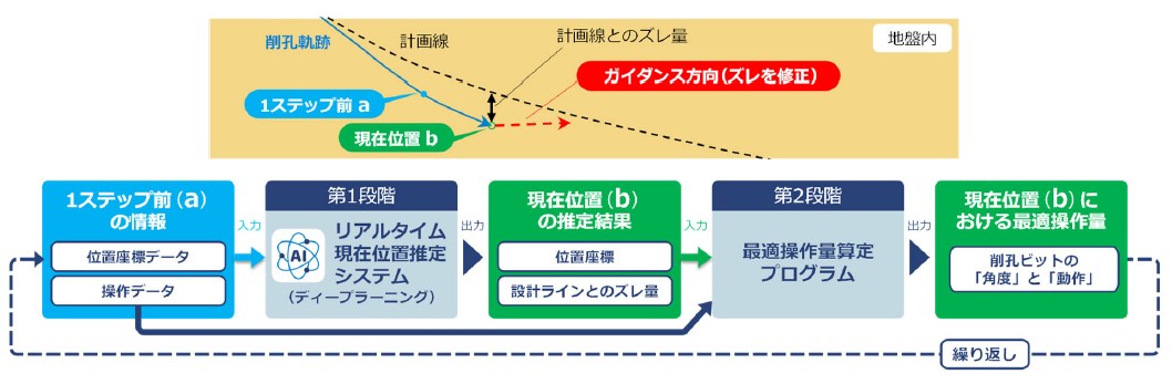 曲がり削孔AIガイダンスシステムの概念図