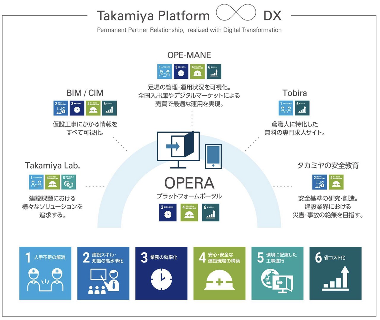 タカミヤは取り扱いが面倒な現場用資機材を対象にした「タカミヤプラットフォーム」を提供しており、今回の「OPERA Cloud」もその一環です。