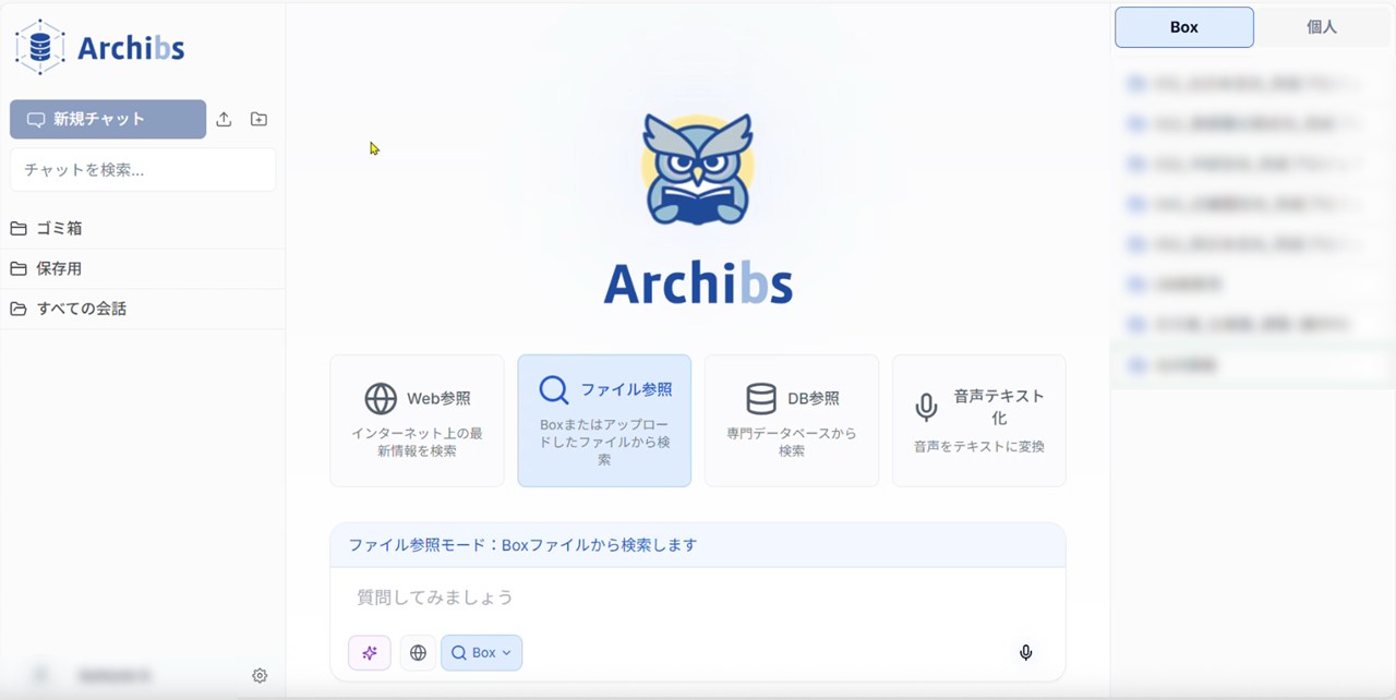 Archibsは、クラウドデータ管理システムの「Box」と連携して、PDFやWord、Excelといった様々な資料を検索できます。