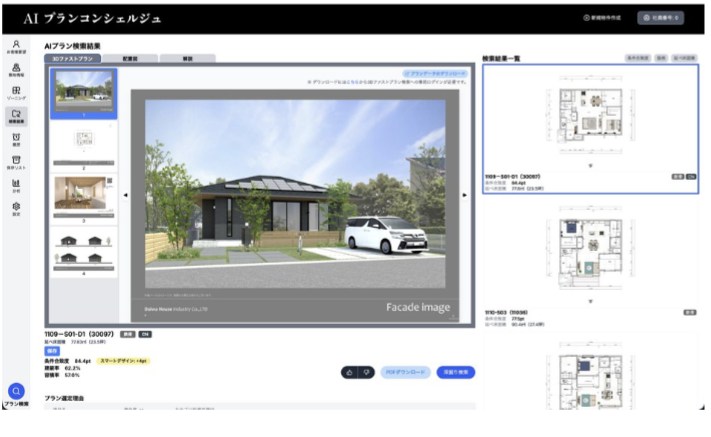 「AIプランコンシェルジュ ver.2」は、派手な生成AIで間取りを自動生成するシステムではありませんが、過去の住宅プランという資産を活かし、敷地条件や要望に応じて探し出すという、住宅営業の地道なニーズに応えています。