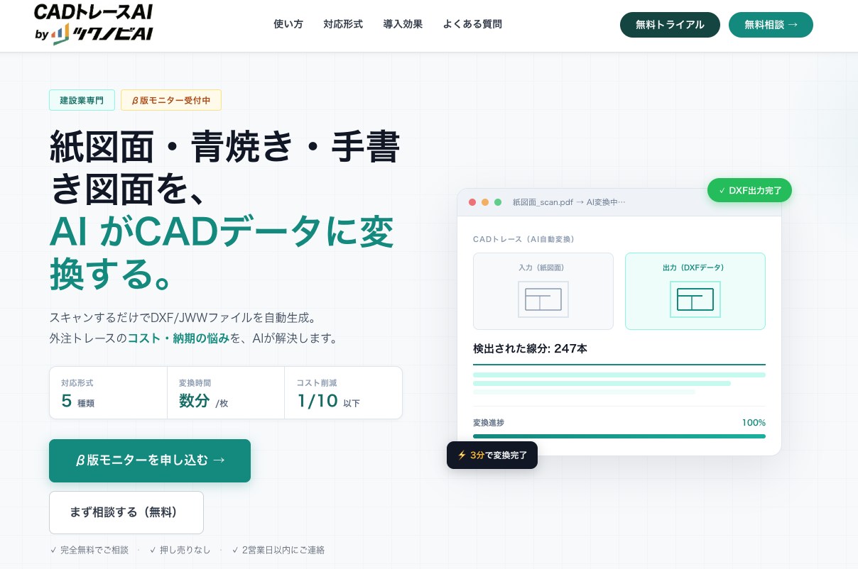 してくれる「CADトレースAI」β版のサービスを開始したのです。(NITACOのプレスリリースはこちら)
