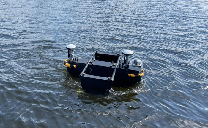 ダム湖の底を3Dスキャンしながら自動航行する水上ドローン