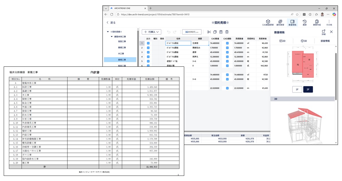 住宅分野の積算は、なかなか骨の折れる仕事ですよね。 設計図はできているのに、そこから数量を拾い、Excelにまとめ、単価を当てはめ、設計変更が出ればまたやり直しです。
