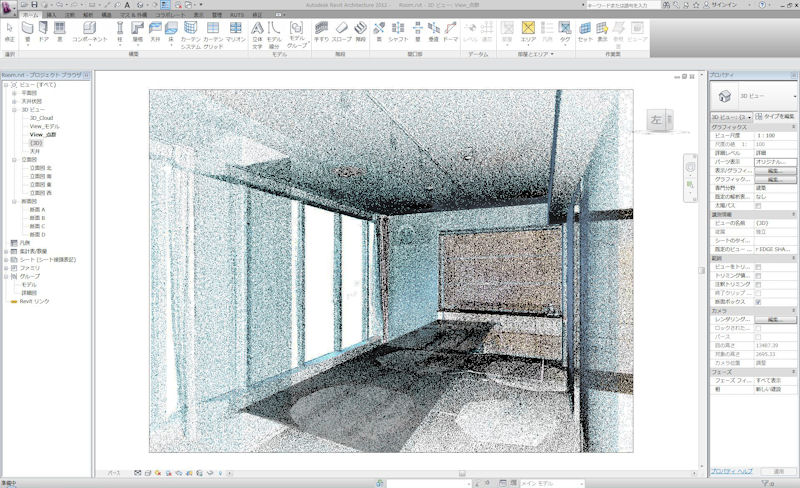 また、既設物件のリノベーションなどの設計では、「3Dレーザースキャナー」という測量機器で室内などを計測した数千万点もの「点群」データをBIMソフトに読み込み、BIMモデルへの変換や点群を背景にして設計を行うこともある。