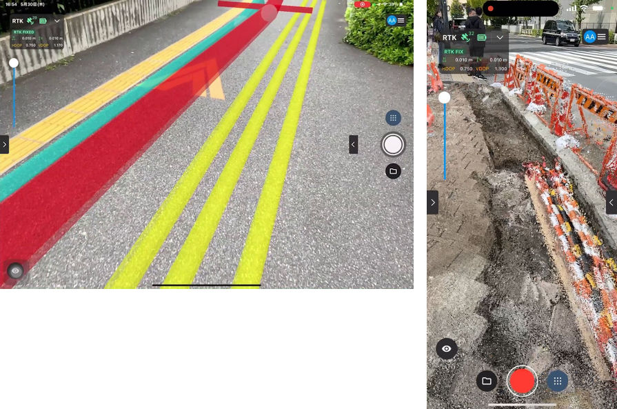 またAR機能を使えば、3Dデータを現場風景の上でそのまま重ねて確認できるため、道路下の埋設管や壁裏の配管設備を“透視”するといった直感的な使い方も可能だ。