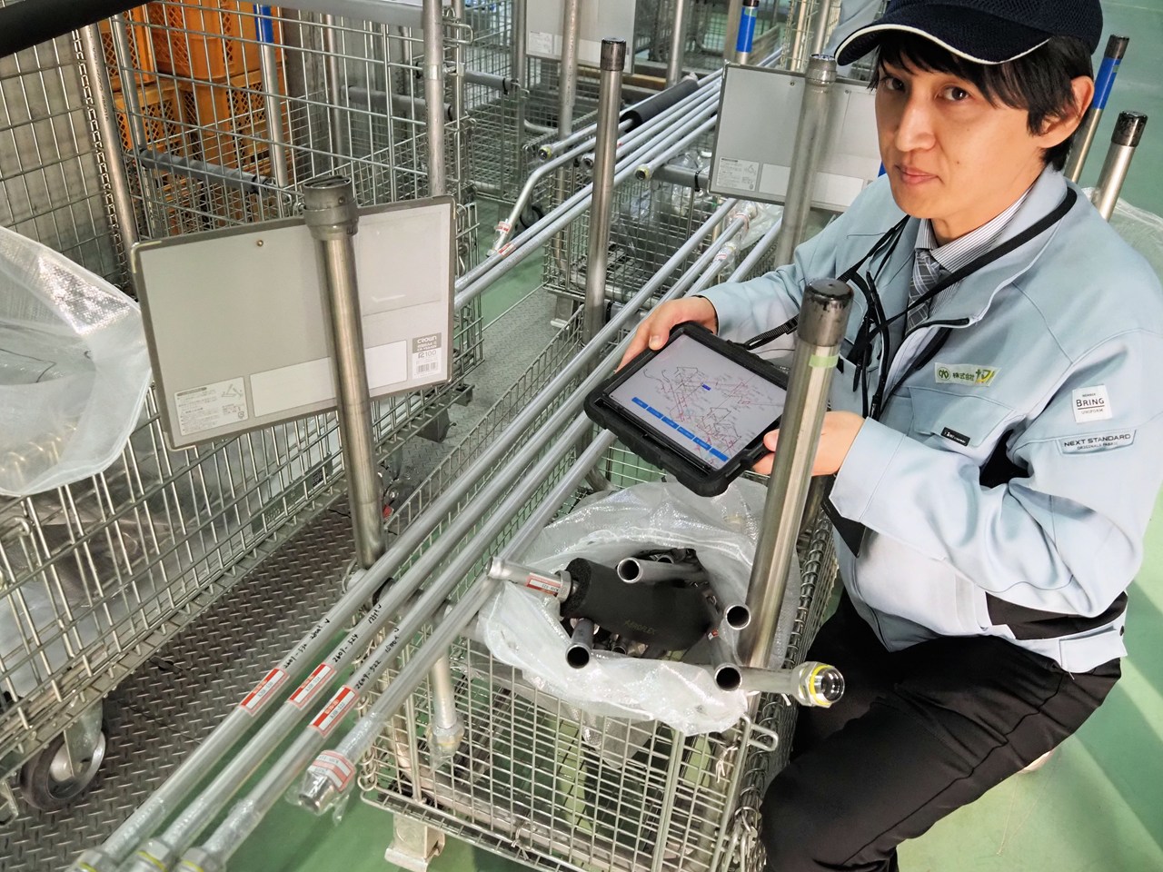 しかし、加工管は長尺・重量物であることも多く、現場に一気に搬入されると、それだけで作業エリアが圧迫される。さらに、加工管の本数が増えれば増えるほど、どれがどの位置に使用される部材なのかを判断するのに手間がかかっていた。