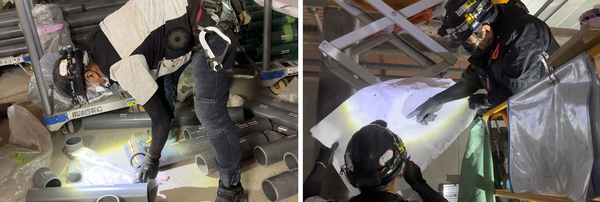 また、現場では「必要な配管部材が見つからない」という問題もあった。配管は搬入後に仮置きされる位置もまちまちで、混み合った山積みの中から目当ての部材を探すだけで大きなタイムロスが発生した。