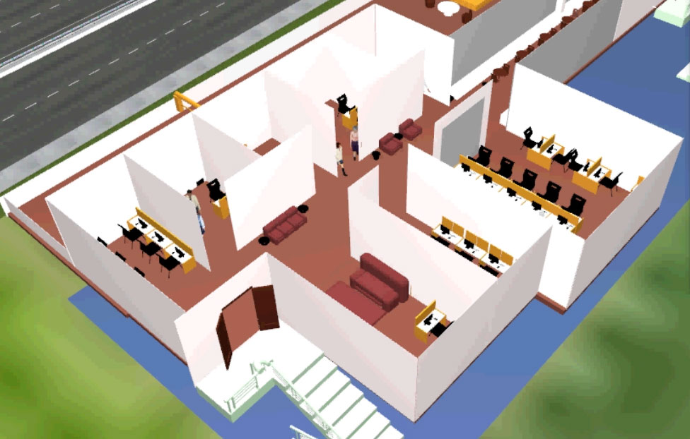 UC-win/Road9.1.0とUC-win/Road SDK 9.1.0をもとに開発したプラグインで、歩行者の避難に関するプラグインの構築を目指しました。歩行者の視点で避難プロセスを見ることができ、避難に要する時間もリアルタイムに表示されます。シナリオ内で使用されている研究所のモデルは3ds Maxで描かれています。シミュレーションのモデルに基づくMATLABを使用したデータは2-dデータを取得し、C++を使用したデータはx座標やy座標に基づき2-dデータを3-dデータに変えます。 画像をクリックすると大きな画像が表示されます。