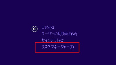 - Ctrl + Alt + Del を押し、タスクマネージャを起動します。