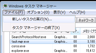 - [ファイル]>[新しいタスクの実行]を選びます。
