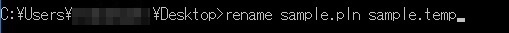- plnファイルの拡張子を、plnまたはpla以外のものに変更してください。下記は、sample.plnからsample.tempというように、ファイル名を変更しています。(renameは、名前を変更するコマンドです。)