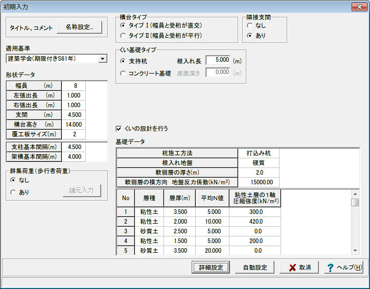 「構台」(建築系での呼称)および「路面覆工」「仮桟橋」(土木系での呼称)の設計計算が可能です。
