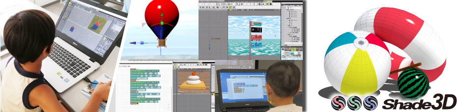 文科省の新学習指導要領では小学校では2020年、中学校では2021年から、プログラミング教育必修化が予定されています。本セミナーは簡単なマウス操作でプログラミングを学ぶことができる「Shade3D ブロックUIプログラミングツール」を用いた小・中学生向けのプログラミングセミナーです。「Shade3Dの説明と使い方練習」「作品作り」「作品の発表」