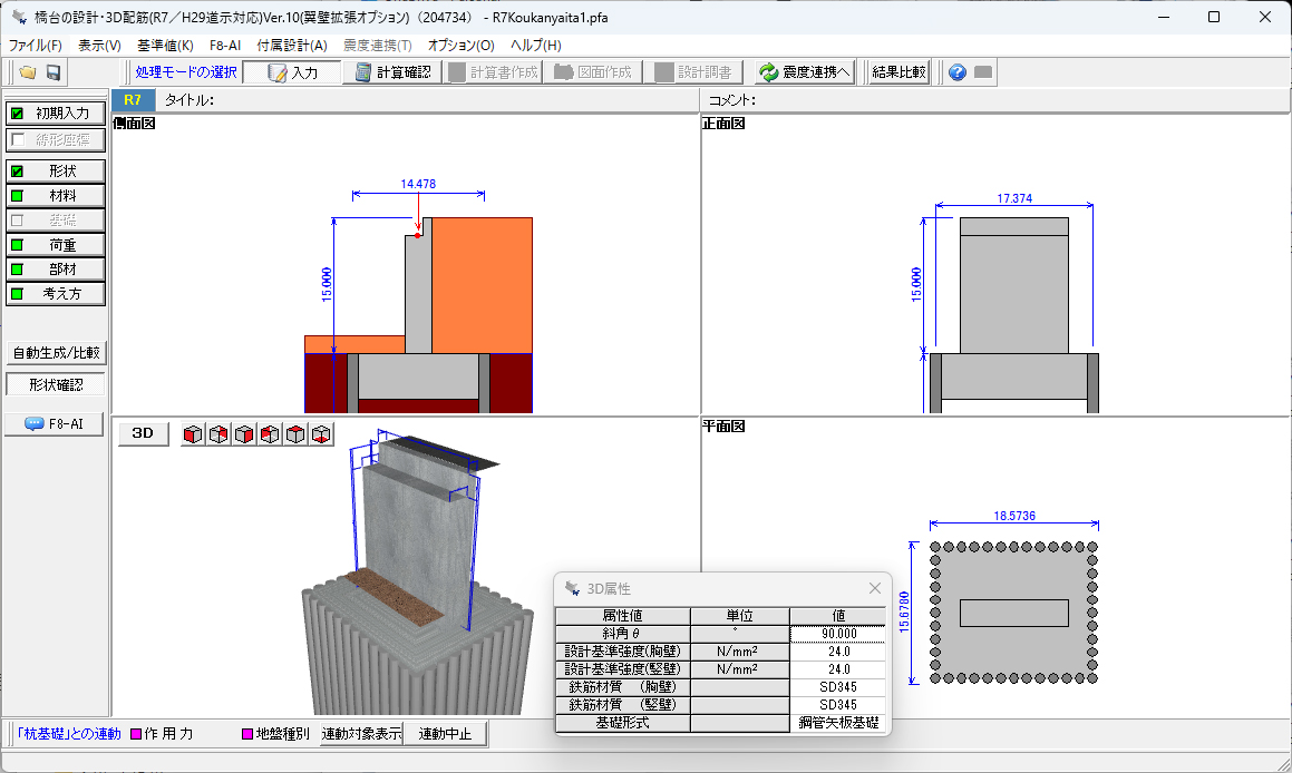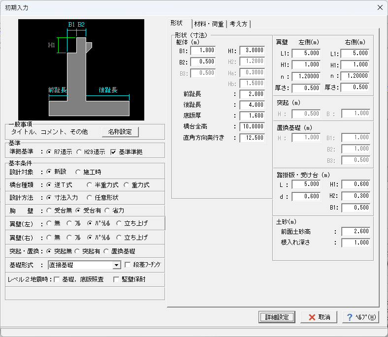 逆T式橋台、重力式橋台の設計計算、図面作成プログラム。